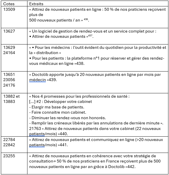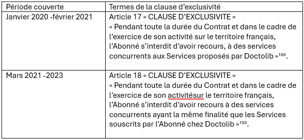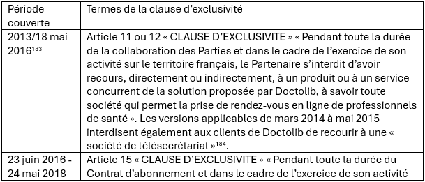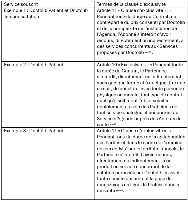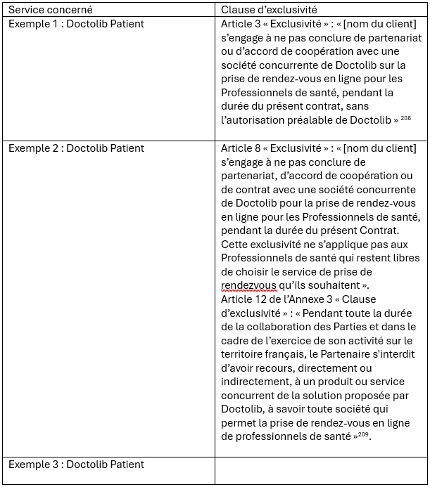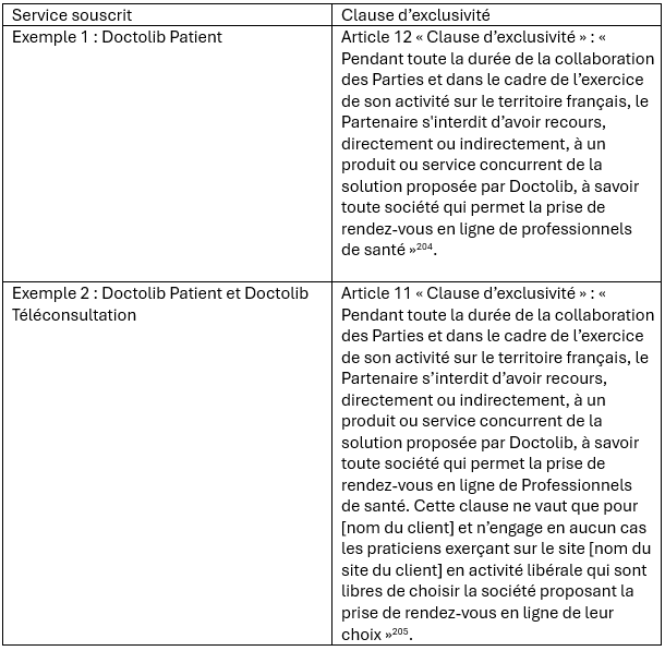 784 Voir en particulier les échanges entre les dirigeants et la direction juridique de Doctolib concernant l’exclusivité et l’allotement aux paragraphes 198 à 207.