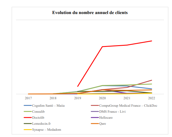 50. Au jour de l’envoi de la notification des griefs, Doctolib avait développé et commercialisé plusieurs solutions62 à destination des professionnels de santé, dont Doctolib Patient, Doctolib Médecin, Doctolib Team, Doctolib Téléconsultation et Doctolib Lecteur.