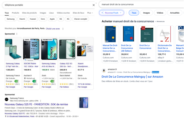 Captures d’écran illustrant la présentation de résultats payants