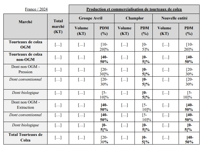 24. Une sous-segmentation supplémentaire selon la qualité des graines (OGM, non-OGM) a également été envisagée7 : en l’espèce, le chevauchement d’activités entre les parties ne concerne que les tourteaux de colza obtenus par extraction non-OGM.