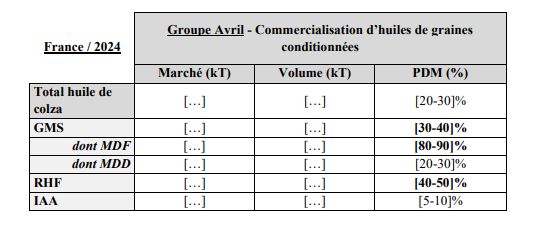 3. SUR LES MARCHES DE LA PRODUCTION ET COMMERCIALISATION D’HUILE RAFFINEE EN VRAC DE COLZA